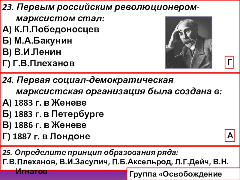 Г.В.Плеханов, В.И.Засулич, П.Б.Аксельрод, Л.Г.Дейч, В.Н.Игнатов