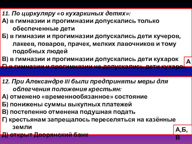 12. При Александре III были предприняты меры для облегчения положения крестьян: