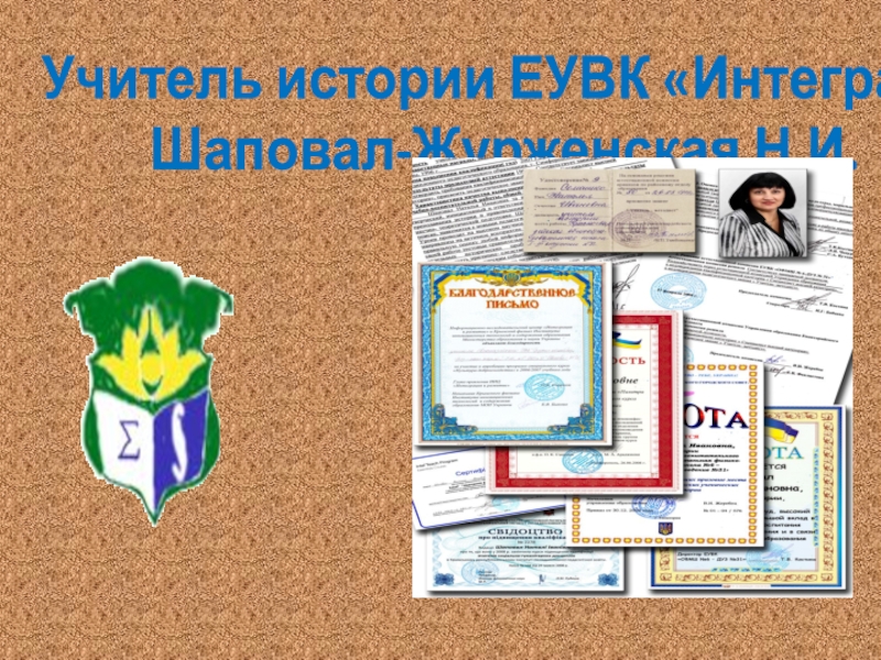 Слайд 9Учитель истории ЕУВК «Интеграл» Шаповал-Журженская Н.И.