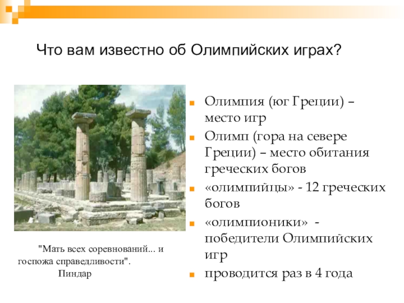 "Мать всех соревнований... и госпожа справедливости". Пиндар