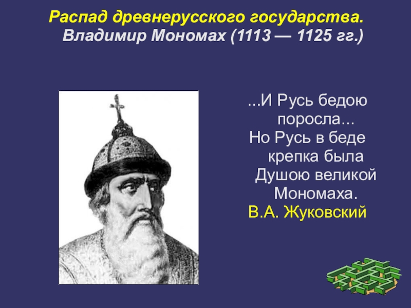 Распад древнерусского государства. Владимир Мономах (1113 — 1125 гг.) ...И Русь бедою поросла... Но Русь в беде
