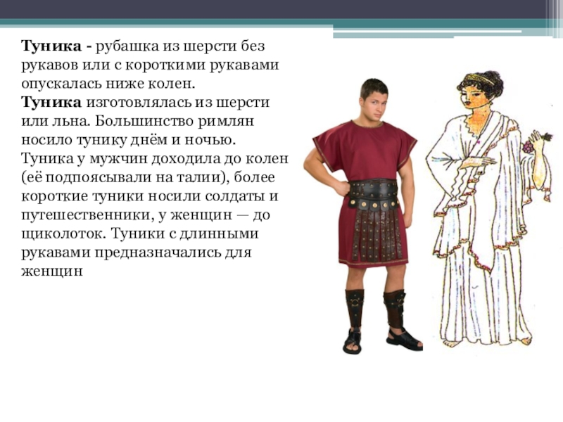 Слайд 13Туника - рубашка из шерсти без рукавов или с короткими рукавами