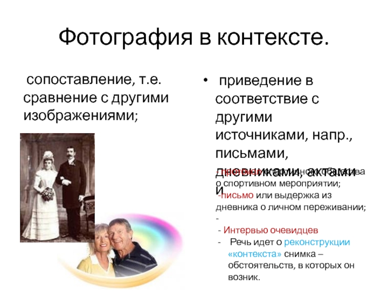 Речь идет о реконструкции «контекста» снимка – обстоятельств, в которых он возник.