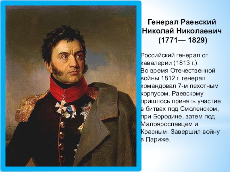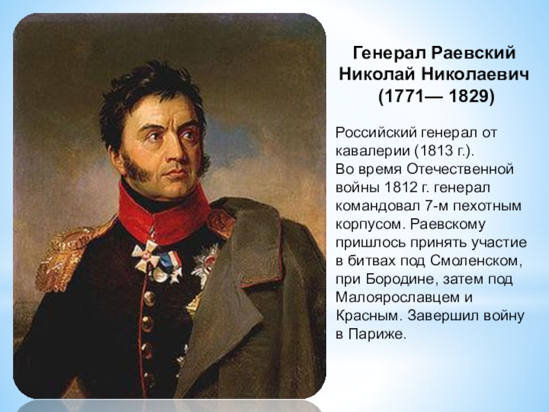 Слайд 13Генерал Раевский Николай Николаевич