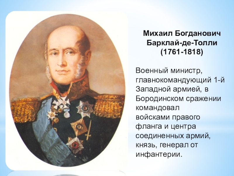 Слайд 4Михаил Богданович Барклай-де-Толли
