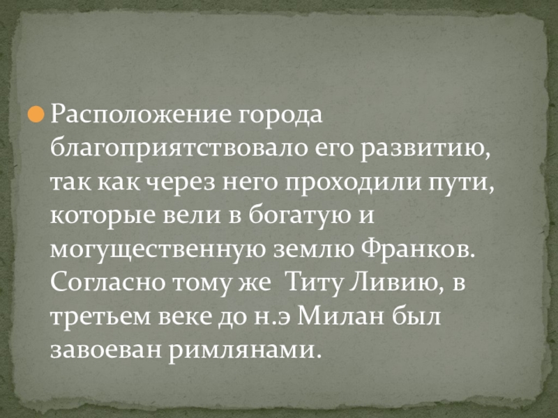 которые вели в богатую и могущественную землю Франков. Согласно тому же Титу Ливию, в третьем веке до н.э Милан был завоеван римлянами.