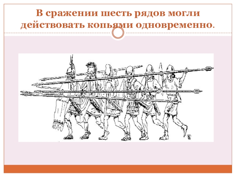 Слайд 7В сражении шесть рядов могли действовать копьями одновременно.