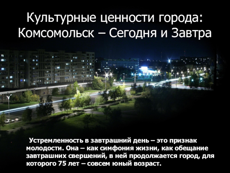 Слайд 11Культурные ценности города: Комсомольск – Сегодня и Завтра
