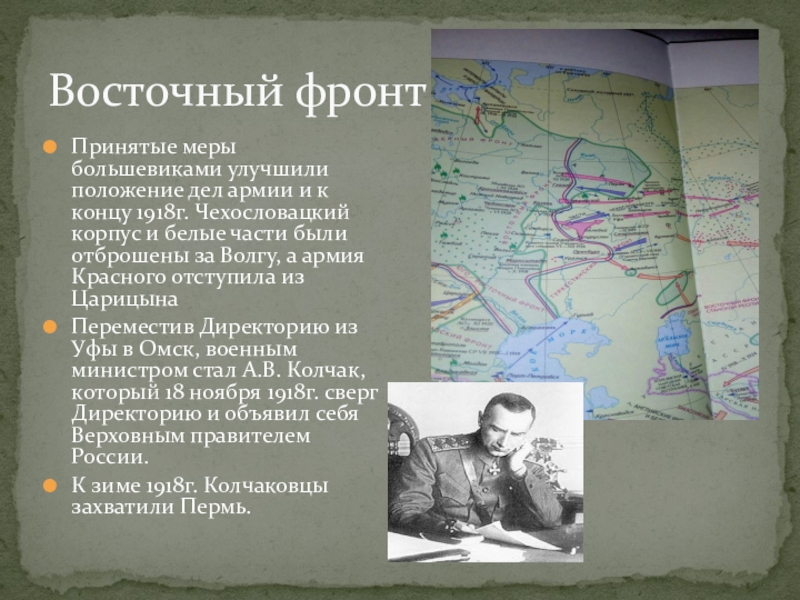 В сентябре 1918г. был учреждён Революционный военный совет. 5 сентября 1918г. После покушения на Ленина начался красный террор. А также были привлечены буржуазии специалисты и бывшие генералы и офицеры царской армии, но к каждому приставлен военный комиссар.
