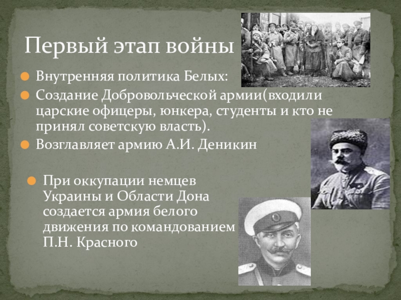 При оккупации немцев Украины и Области Дона создается армия белого движения по командованием П.Н. Красного