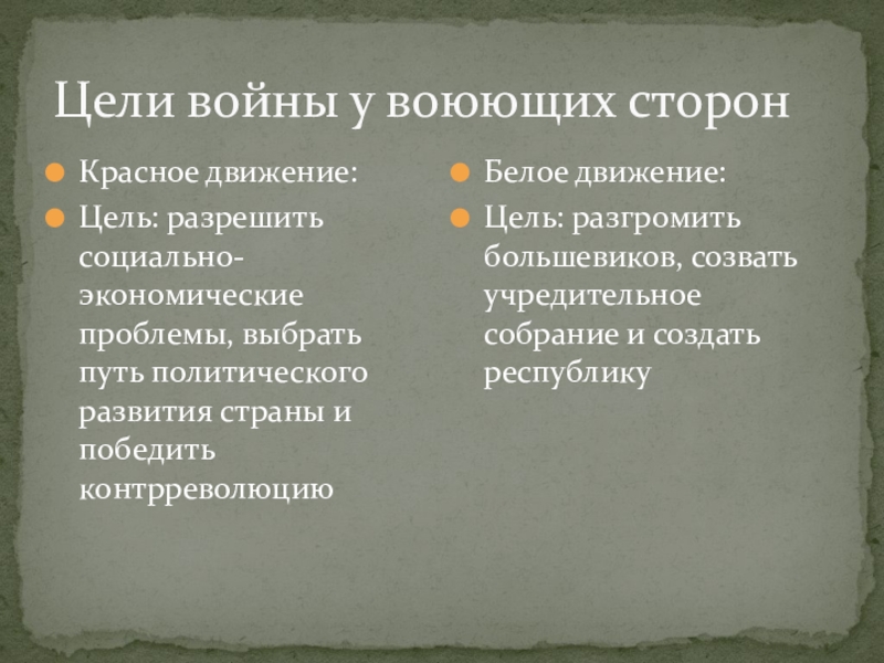Цель: разгромить большевиков, созвать учредительное собрание и создать республику