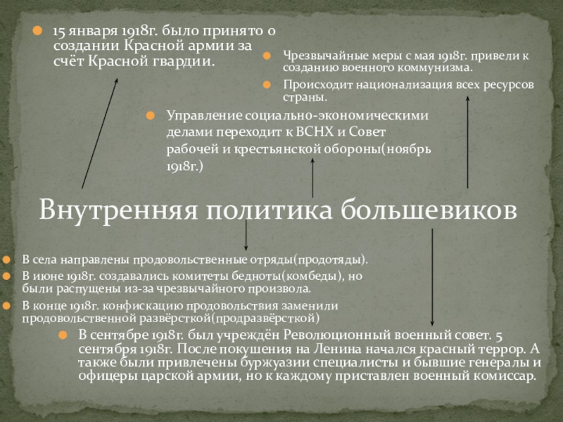 Чрезвычайные меры с мая 1918г. привели к созданию военного коммунизма.