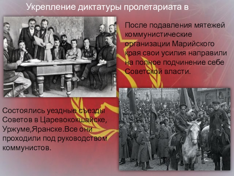 Состоялись уездные съезды Советов в Царевококшайске, Уржуме,Яранске.Все они проходили под руководством коммунистов.