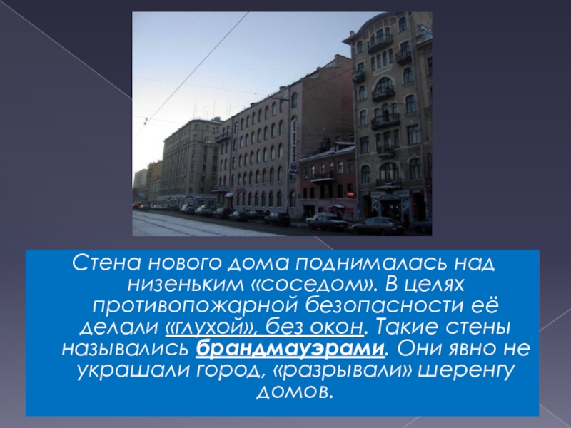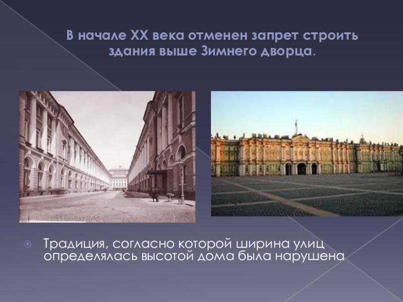 Традиция, согласно которой ширина улиц определялась высотой дома была нарушена