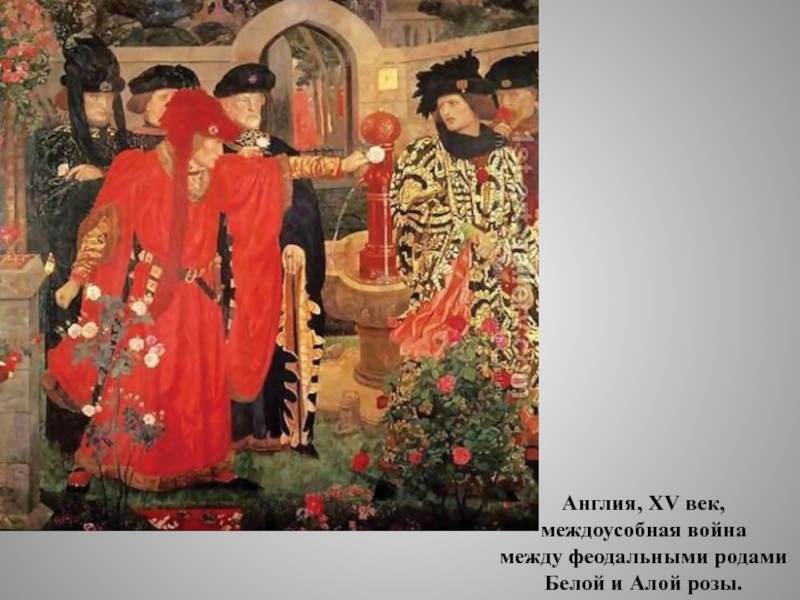 Англия, XV век,междоусобная война между феодальными родами Белой и Алой розы.