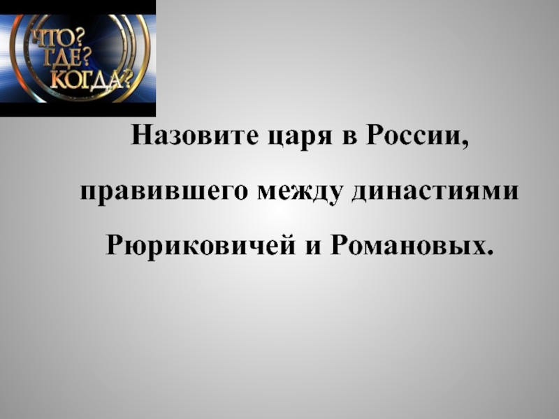 Слайд 13Назовите царя в России, правившего между династиями Рюриковичей и Романовых.