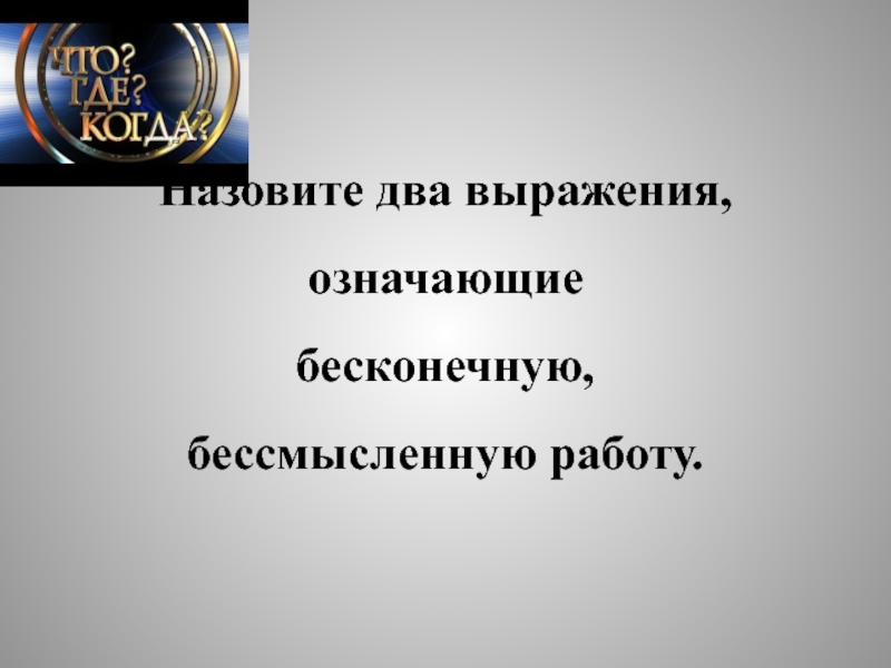 Слайд 8Назовите два выражения, означающие бесконечную, бессмысленную работу.