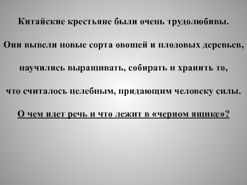 Китайские крестьяне были очень трудолюбивы. Они вывели новые сорта овощей и плодовых деревьев, научились выращивать, собирать и