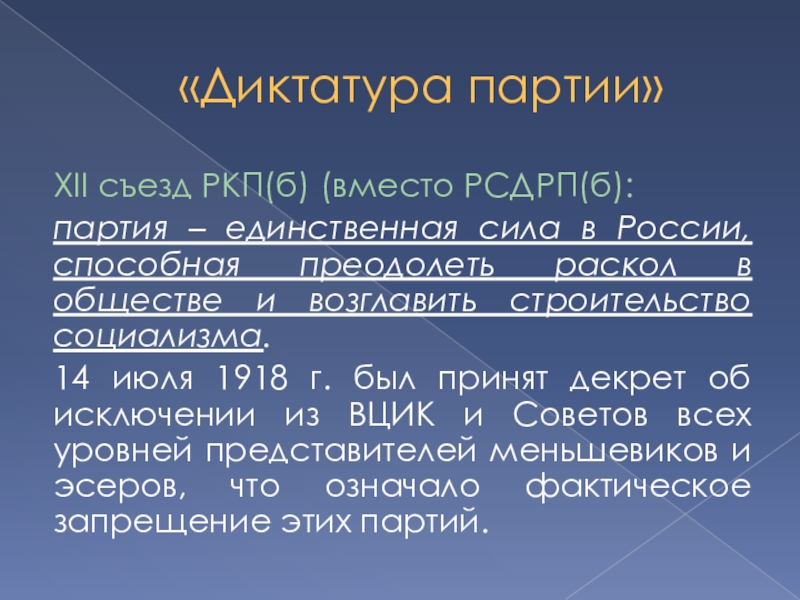 «Наша предыдущая экономическая политика, если нельзя сказать: рассчитывала (мы в той обстановке вообще рассчитывали мало), то до известной степени предполагала, — можно сказать безрасчётно предполагала, — что произойдёт непосредственный переход старой русской экономики к государственному производству и распределению на коммунистических началах».