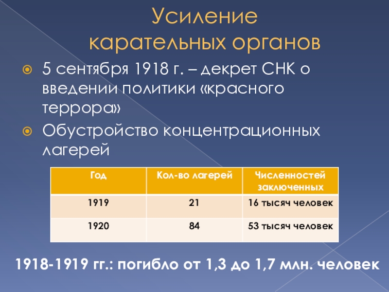 1918-1919 гг.: погибло от 1,3 до 1,7 млн. человек