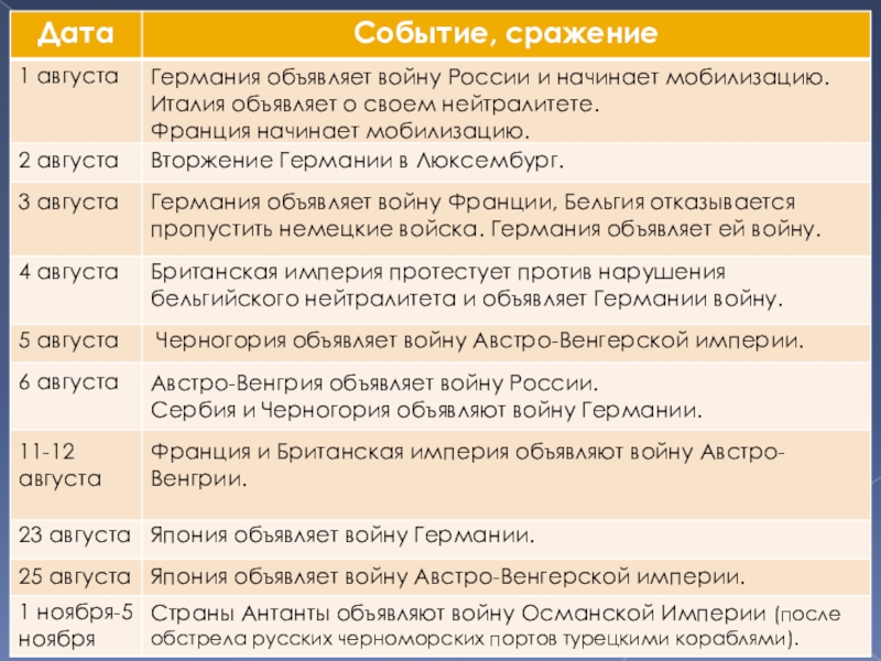 4. Страна, которой Германия 1 августа 1914 г. объявила войну