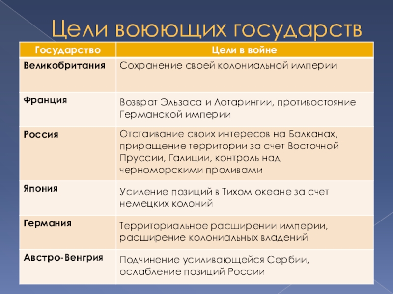 Отстаивание своих интересов на Балканах, приращение территории за счет Восточной Пруссии, Галиции, контроль над черноморскими проливами