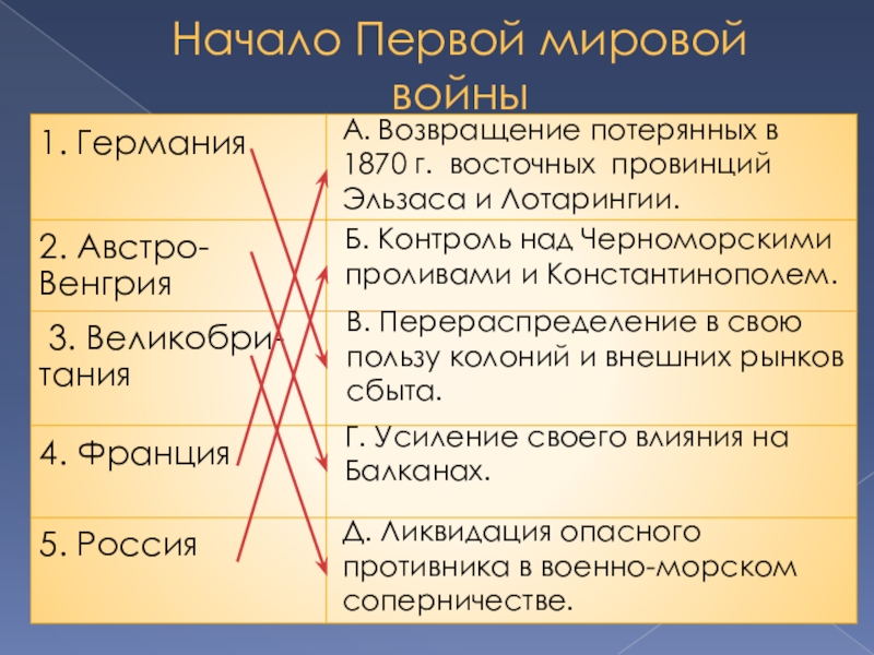 7. Страна – участница Первой Мировой войны, имевшая своей целью возврат Эльзаса и Лотарингии