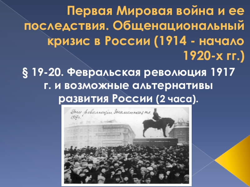 § 19-20. Февральская революция 1917 г. и возможные альтернативы развития России (2 часа).
