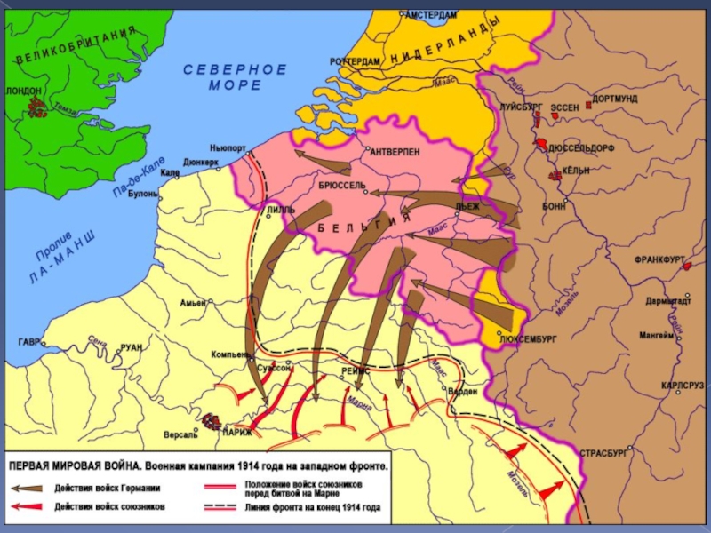 Германия объявляет войну Франции, Бельгия отказывается пропустить немецкие войска. Германия объявляет ей войну.