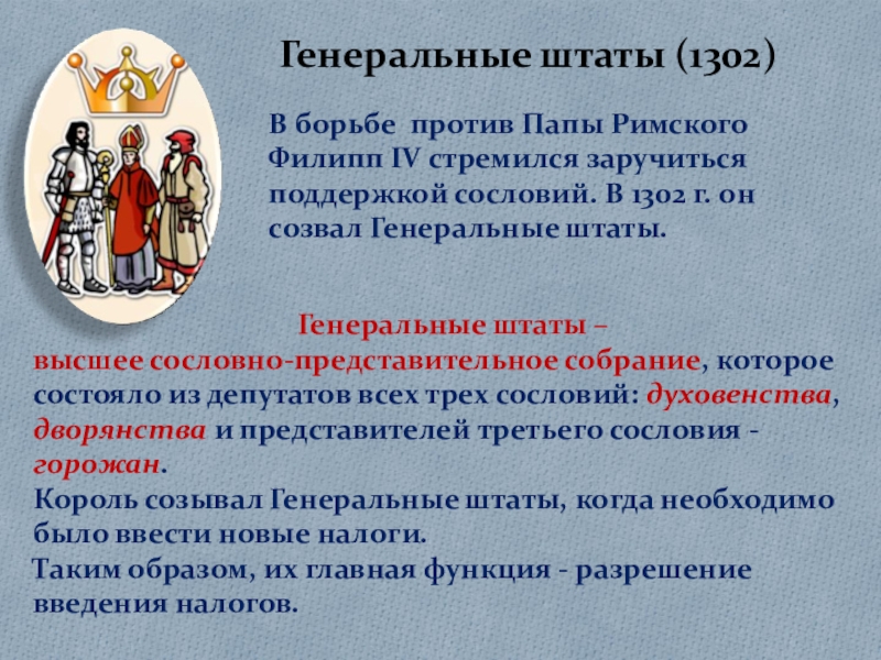 Король созывал Генеральные штаты, когда необходимо было ввести новые налоги.