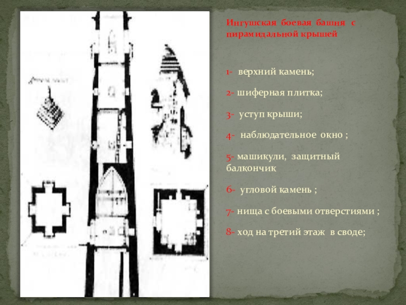 Слайд 8Ингушская боевая башня с пирамидальной крышей