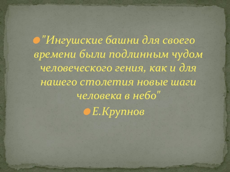 Слайд 4"Ингушские башни для своего времени были подлинным чудом человеческого гения, как