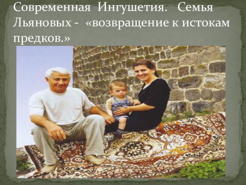 Слайд 18Современная Ингушетия. Семья Льяновых - «возвращение к истокам предков.»