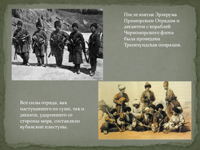 После взятия Эрзерума Приморским Отрядом и десантом с кораблей Черноморского флота была проведена Трапезундская операция.