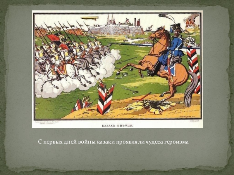 Слайд 25Казаки и в обороне стойко отстаивали свои позиции, твёрдо выполняя приказ