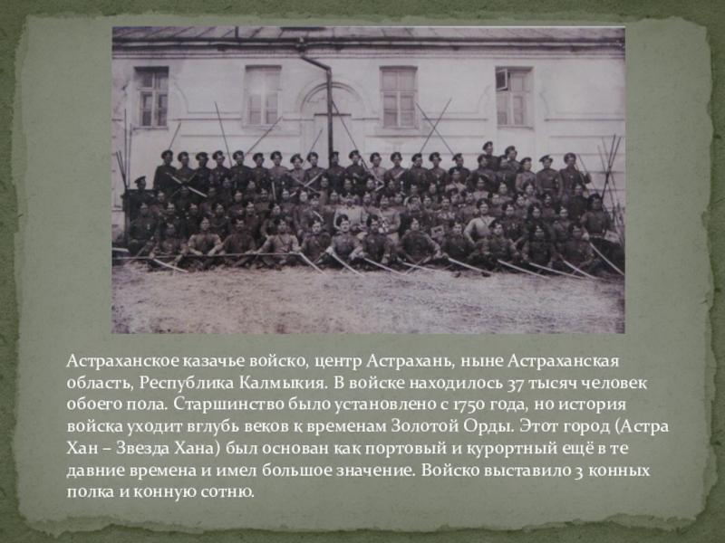 Слайд 9Астраханское казачье войско, центр Астрахань, ныне Астраханская область, Республика Калмыкия. В