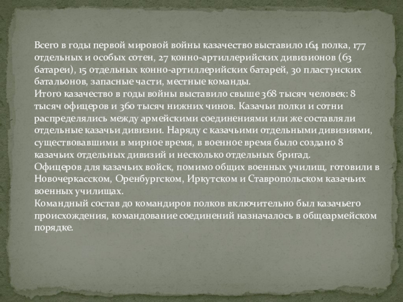 Слайд 3Всего в годы первой мировой войны казачество выставило 164 полка, 177