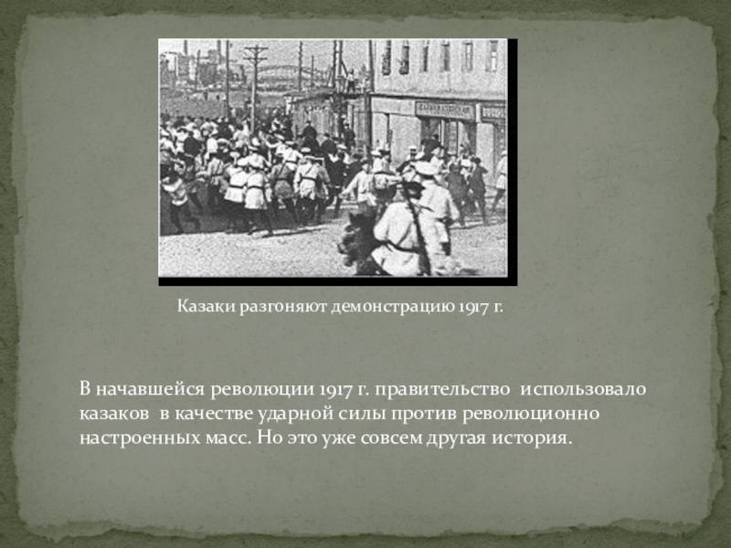 Слайд 39В начавшейся революции 1917 г. правительство использовало казаков в качестве ударной