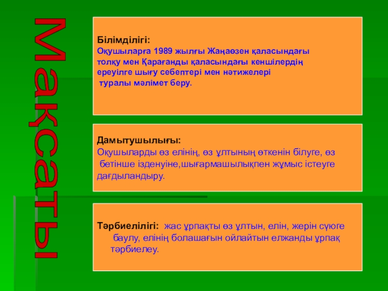 Тәрбиелілігі: жас ұрпақты өз ұлтын, елін, жерін сүюге