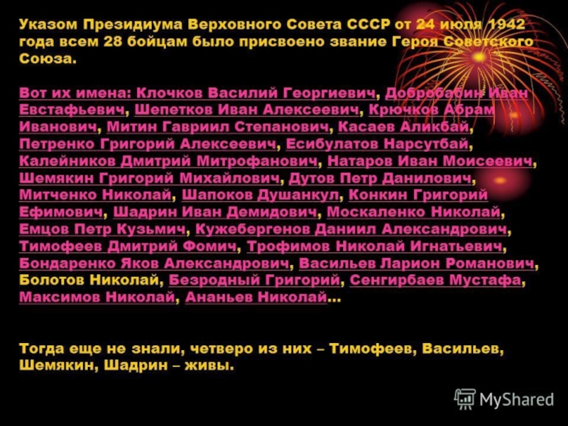 В Черноморском морском пароходстве были сухогрузы, названные в честь Панфиловцев.