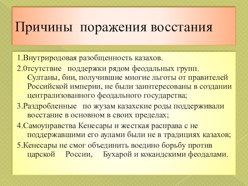 2.0тсутствие поддержки рядом феодальных групп. Султаны, бии,