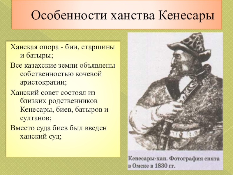 Ханский совет состоял из близких родственников Кенесары, биев, батыров и султанов;