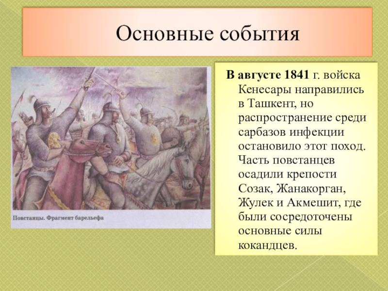 В августе 1841 г. войска Кенесары направились в Ташкент, но