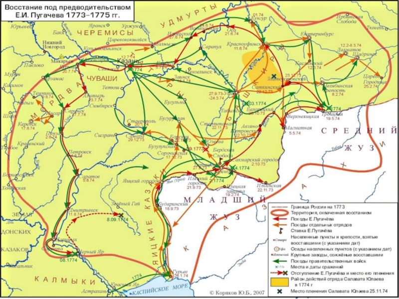 Слайд 9Часть казахской родовой верхушки сразу же поддержала восстание Пугачева. Надеясь, что