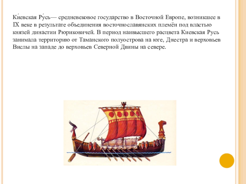 Слайд 3Ки́евская Ру́сь— средневековое государство в Восточной Европе, возникшее в IX веке