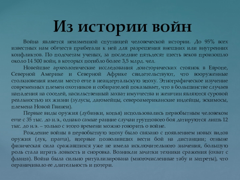 Война является неизменной спутницей человеческой истории. До 95% всех