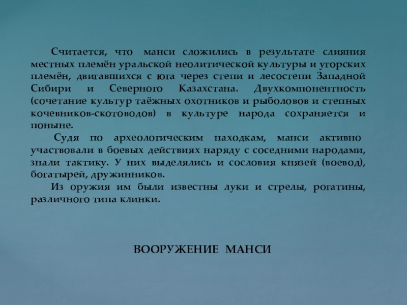 Слайд 18ВООРУЖЕНИЕ МАНСИ