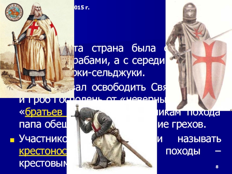 Участников похода стали называть крестоносцами, а сами походы – крестовыми.