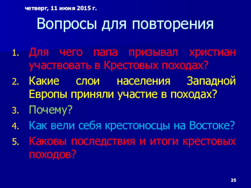 Слайд 25Вопросы для повторения