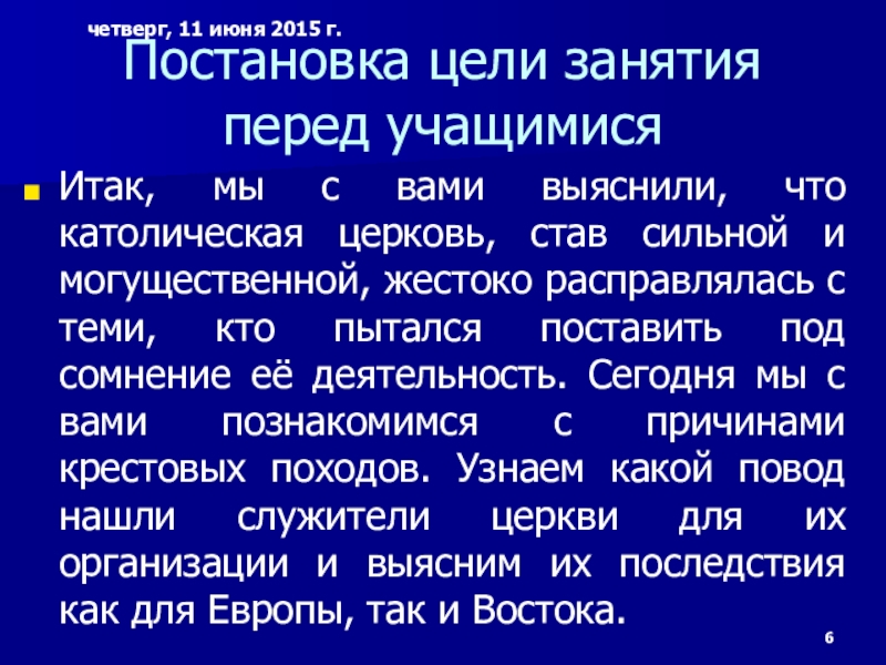 Слайд 6Постановка цели занятия перед учащимися